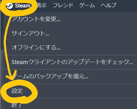 【steam】⇒【設定】